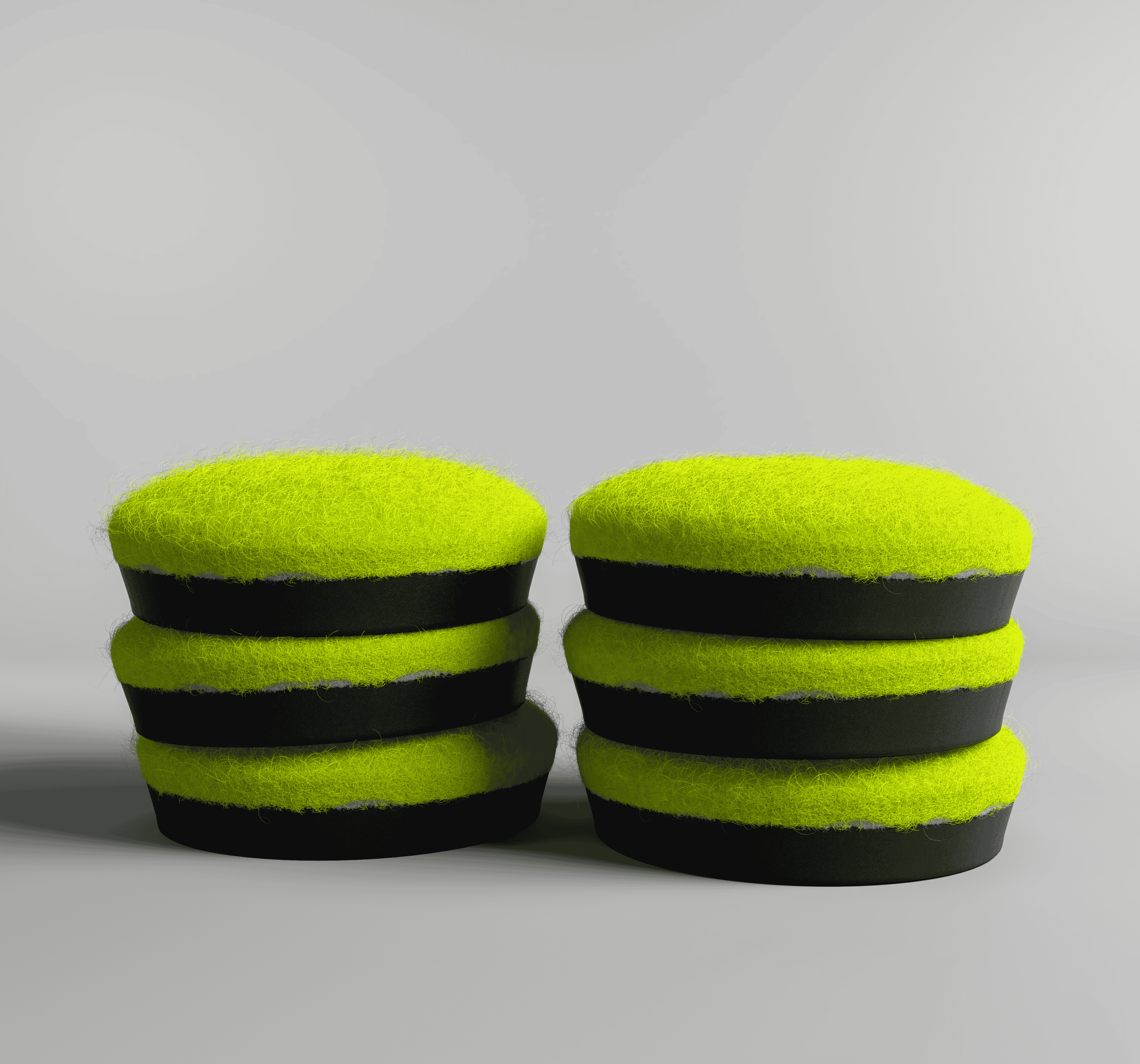 Cirkulære filtpuder lavet af genanvendte padel- & tennisbolde.